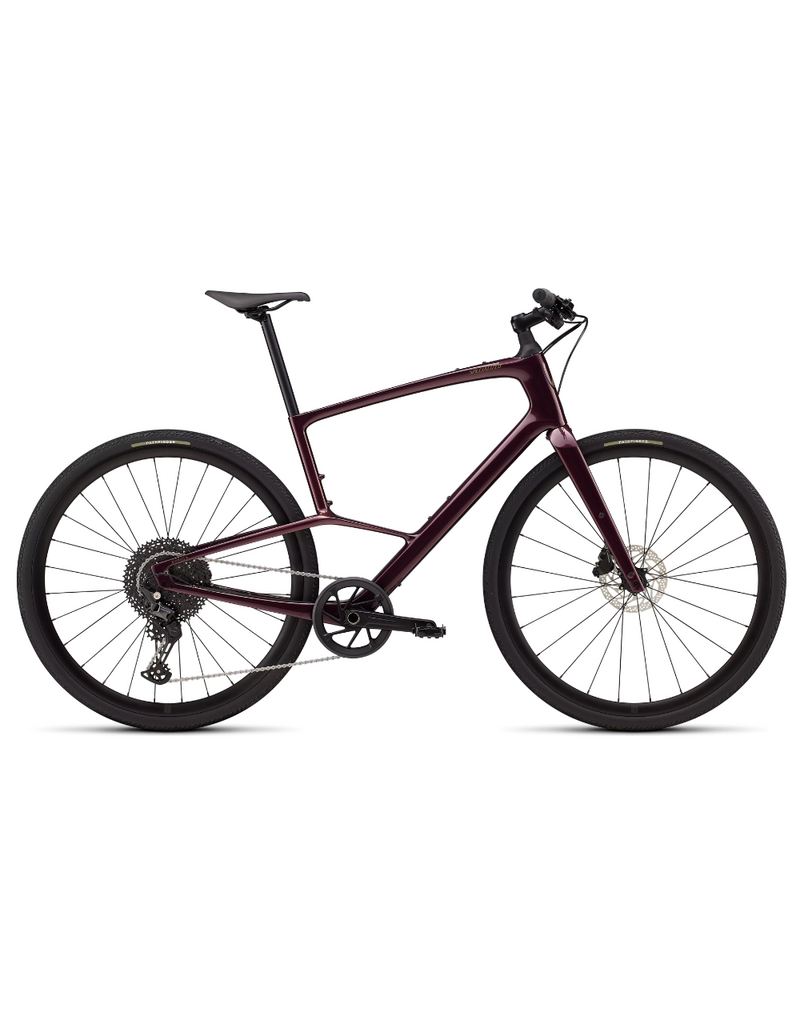 The Specialized Sirrus X 5.0 in Gloss Bordeaux Metallic is a high-performance fitness hybrid bike designed for riders who want speed, comfort, and versatility across city streets and mixed terrain. Combining a lightweight carbon frame with wide tires and modern features, the Sirrus X 5.0 delivers a smooth and confident ride for commuting, fitness training, and everyday adventures.