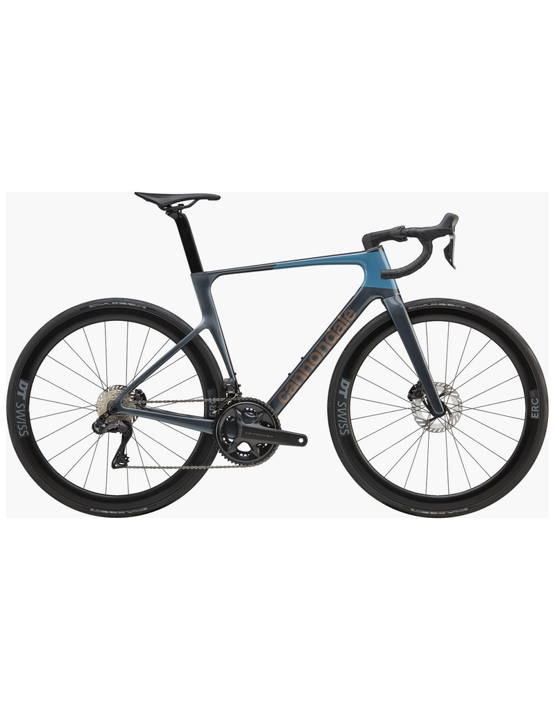 Optimized speed for full-gas racing. The superlight Gen 5 carbon frame rolls on DT Swiss ERC LOG 45 carbon wheels with DT Swiss 370 hubs. Shimano’s Ultegra Di2 handles shifting with electronic precision. Vision Trimax Carbon Aero bars and Cannondale C1 Conceal stem shape a low, efficient front end, while Ultegra hydraulic discs stay predictable when pace compresses and corners come in hot. Built to make the surge stick.
