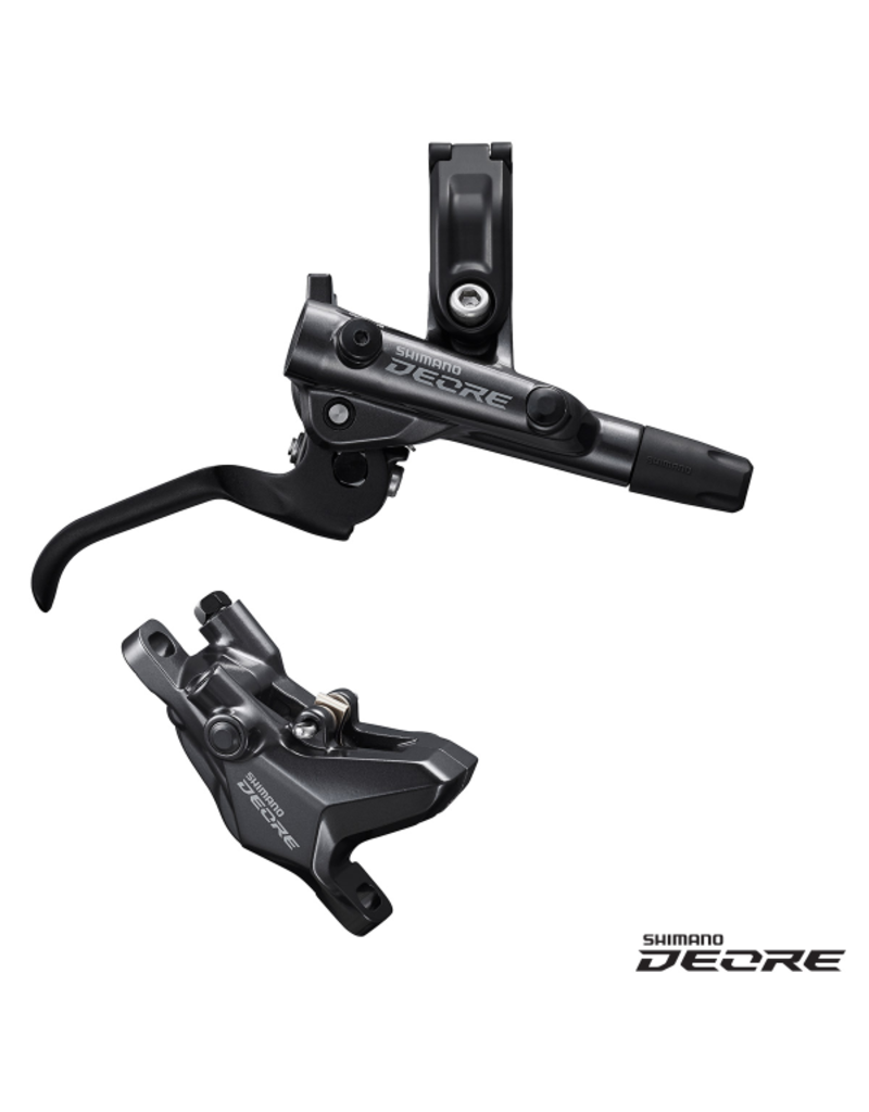 With quicker brake engagement and shorter free stroke, the Shimano Deore BL-M6100 brake lever delivers intuitive braking so you can stay focused on the trail ahead. The I-SPEC EV shift lever, with 10 deg. rotation angle setting range, offers a wider adjustment range for superior rider tuning. The redesigned 2-piston brake lever results in a stiffer mount for better feedback and more power. The brake lever is equipped with Shimano's proven Servo Wave technology which results in quicker pad/rotor engagement, improved power, and a shorter free stroke. The Deore BR-M6100 caliper features lightweight braking performance and reliable stopping power in all conditions. It is a lightweight, 2-piston disc brake caliper with quick piston retraction, and its superior modulation gives you the power you need at low weight.