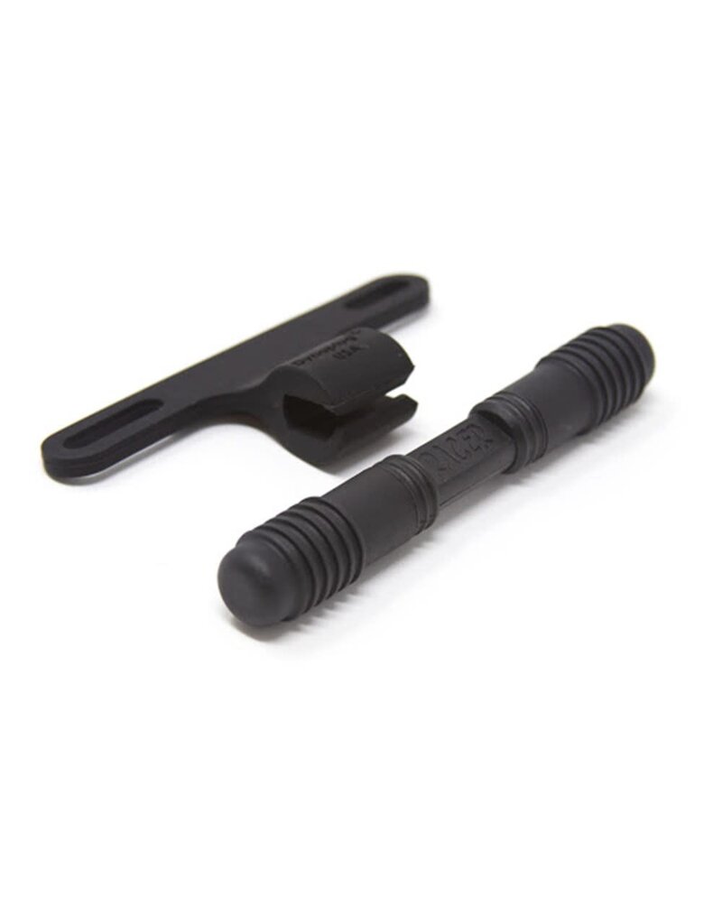 Dynaplug holds the prize! Without a doubt, this Carbon Racer tool is the optimal onboard choice for tubeless bike riders who crave everything featherweight and beyond. ONLY 14 grams (less than one half ounce) packages the fastest tool to plug pesky punctures that evade sealant. We pulled out all the stops with this one to beat the scale but being lite doesn’t mean it’s not tough! This tool molded of Nylon 6 plus 30% glass fill fibers which creates it's Carbon black matte surface. All Dynaplug Racer tools come with Dynaplug repair plugs, Soft Tip and Mega, with one stowed at each end ready to use. Snap on caps allow it to be deployed quickly and keep the plugs clean. Another special feature is the complimentary Carbon Silicone holder that neatly installs under the bottle cage to make the Racer easily accessible. The silicone holder weighs in at 10 grams; if that tips the scale too much leave it behind or give it to your buddy. It's compatible with the Aluminum Racer line as well.
