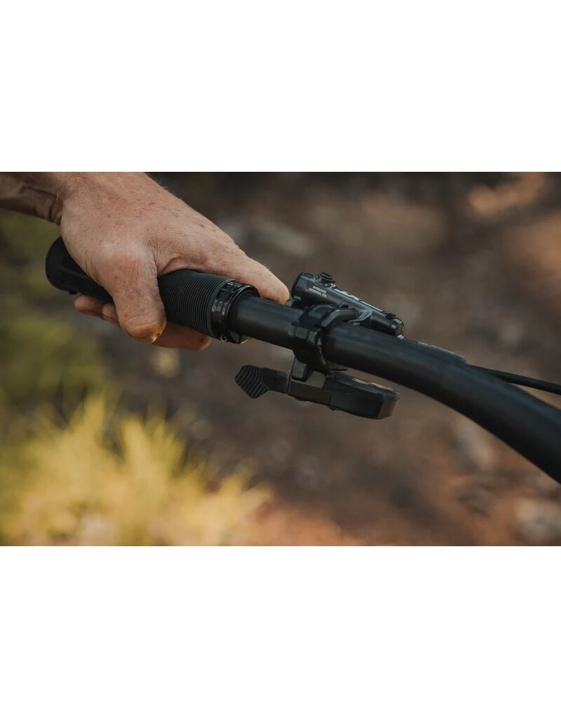 A shorter throw means the lever can be rotated further under the bar to avoid contact with the rider’s thumb knuckle, for more ergonomic actuation. Haptic feedback from the lever ensures the rider senses when they’ve actuated their dropper post.