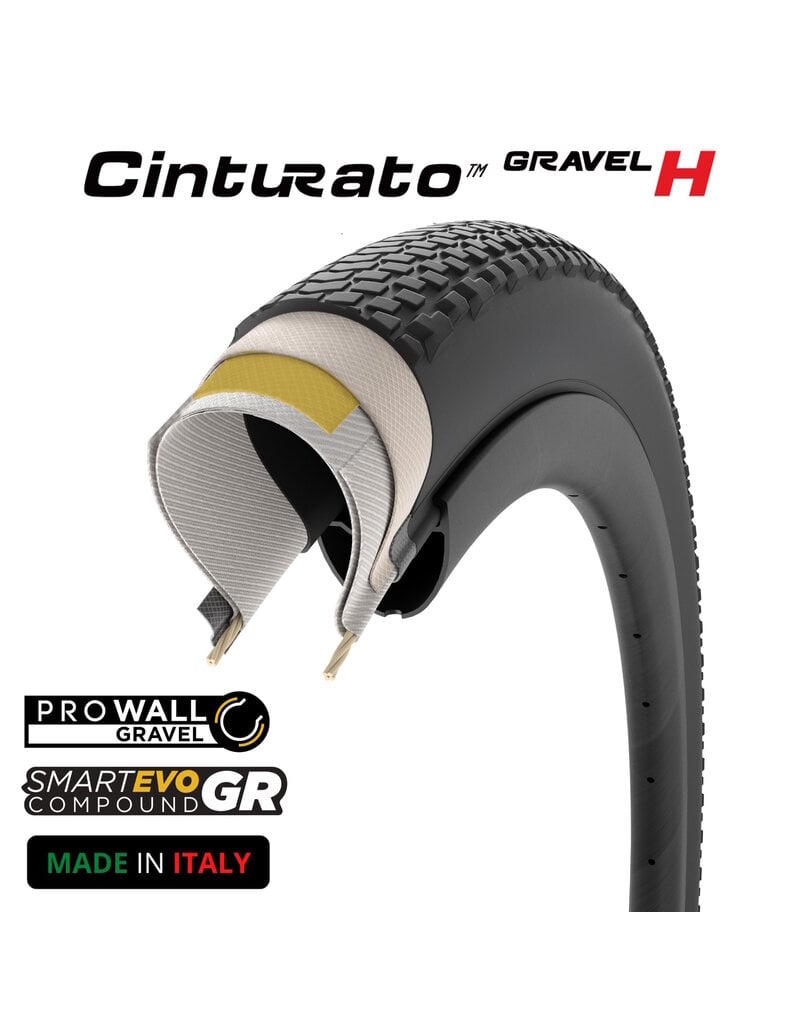 Cinturato™ Gravel H is the gravel tyre designed for hard and compact surfaces, featuring a low-profile tread with tightly packed grooves that provide a wide contact area and precise handling on all hard terrains, including asphalt. Thanks to its tread design, it delivers excellent performance in all weather conditions, both dry and wet, while offering a high level of puncture protection. Compatible with hookless rims within the limits of the latest standards, it is available in multiple sizes, versions, and colours.