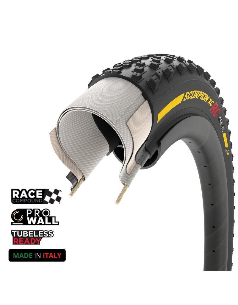 Pirelli Scorpion™ XC RC: born in World Cup racing, built for the future of XC the new Scorpion™ XC RC evolves from World Cup success to deliver next-level performance for today’s Cross-Country racing. Engineered for riders who demand speed, precision, and control, this updated version features increased volume, a squarer profile, the advanced Race XC compound, and a fully redesigned lightweight, durable casing. Greater volume improves comfort and stability on technical terrain, while the squarer profile ensures solid cornering support and precise handling. The new Race XC compound blends chemical grip with low rolling resistance to push your speed to the limit. The innovative casing absorbs impacts while offering race-ready protection without adding unnecessary weight. Tested at the highest levels of XC competition and developed with Italian engineering, the Scorpion™ XC RC is ready to take you beyond your limits.