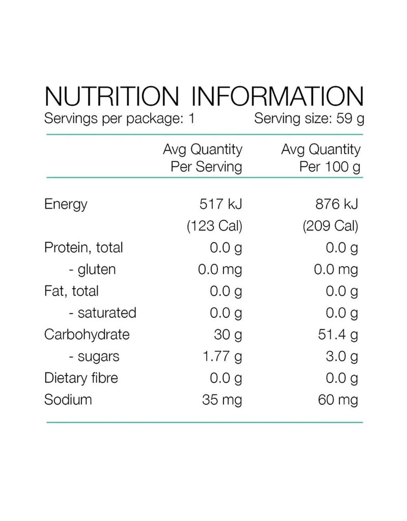 - 25g carbohydrates per serve
