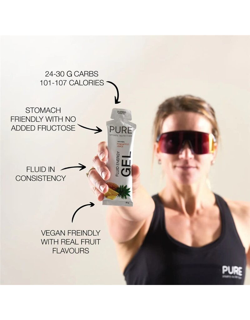 PURE Fluid Energy Gels are a premium natural sports gel using real fruit concentrates, juices, carbohydrates, and electrolytes.