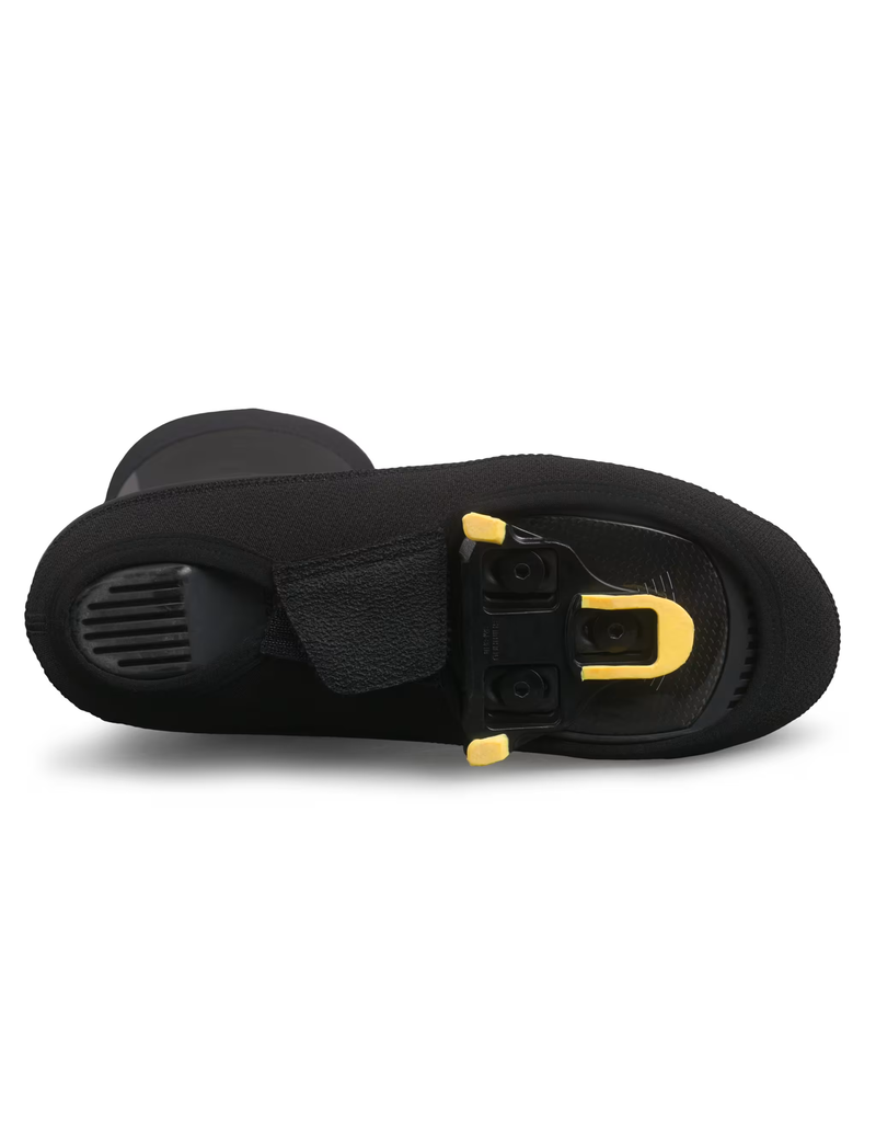 The Deep Winter Overshoes are our most protective pair of shoe covers yet and keep your feet warmer and drier for longer on cold, wet winter rides. Designed to be worn beneath bib tights and put on before shoes, the raised cuff forms a watertight seal around the calf and prevents water being absorbed down the leg. The main body of the overshoe is made with a PU-coated neoprene for excellent insulation and waterproofing while the underside makes use of an alternative neoprene fabric which incorporates kevlar for durability. A resilient velcro tab keeps the overshoe securely in place and can be adjusted to suit your shoe. The reflective stripe on the back helps you stay seen in low light, particularly when the overshoe is worn without bib tights and the full length of the stripe is visible.
