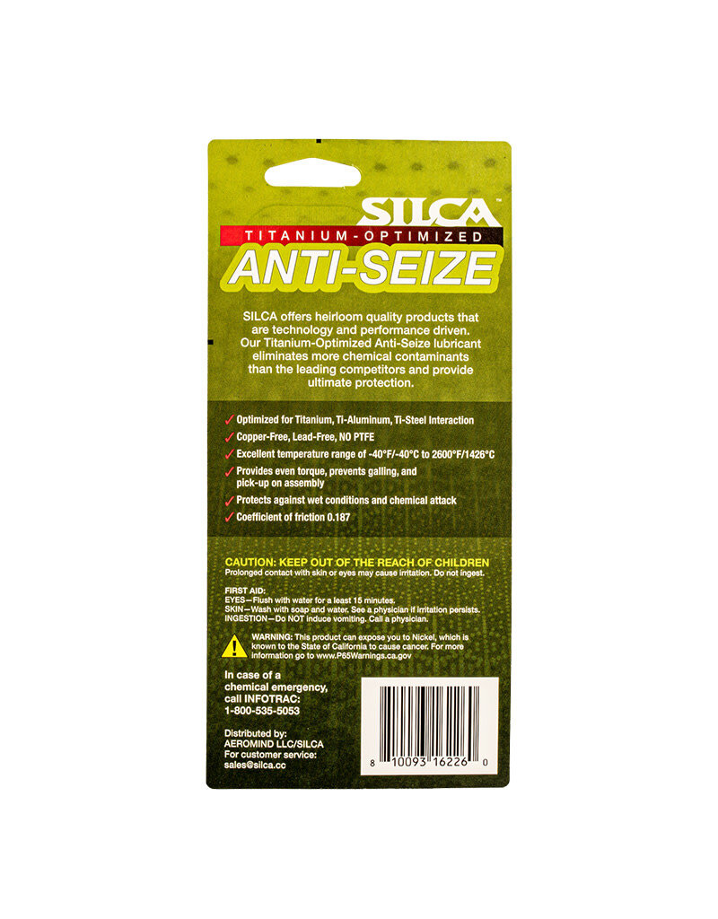 With a superior Nickel-based formula, SILCA's Anti-Seize is made specifically for reactive metals like: magnesium, titanium, aluminum, carbon and stainless steels and combinations of all.