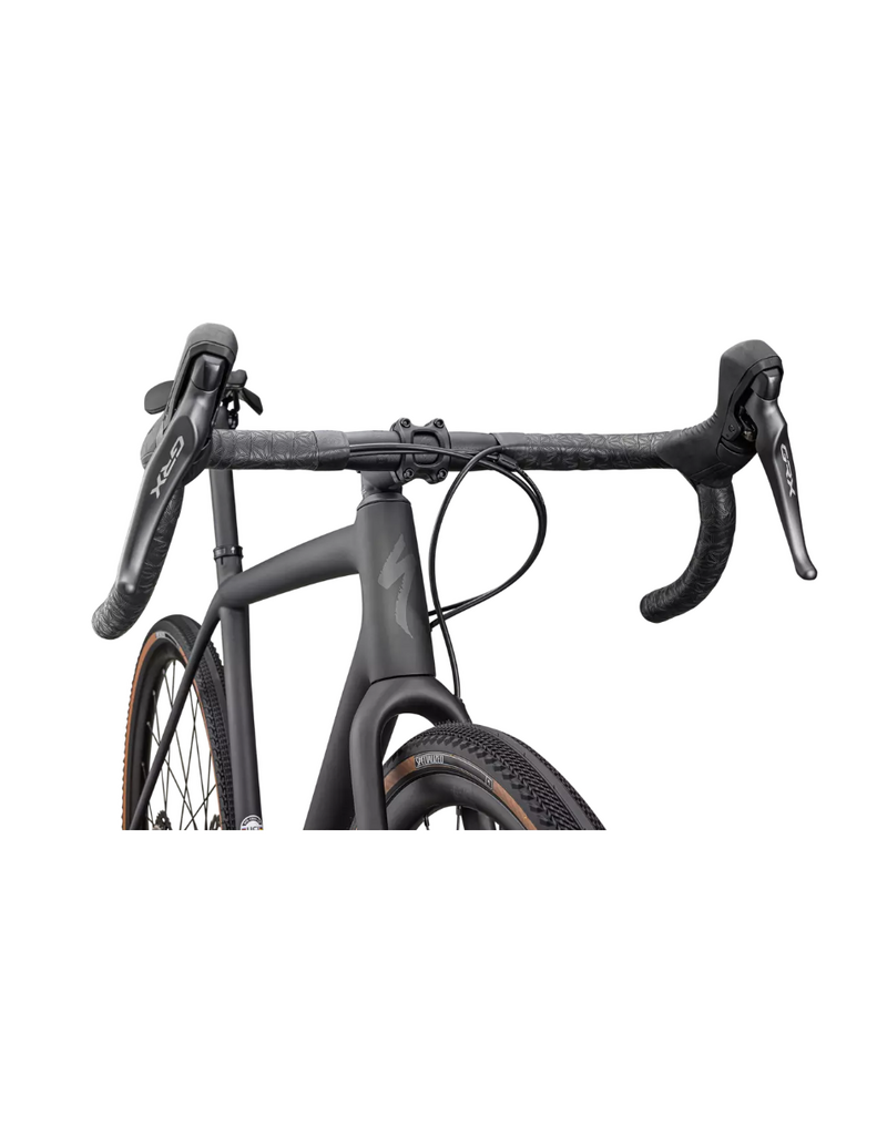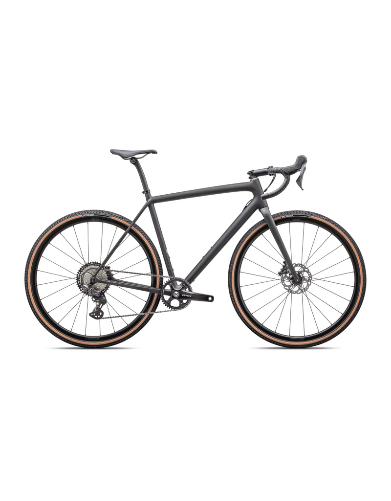 This Crux Comp comes spec'd with a reliable and smooth-shifting Shimano GRX 12-speed groupset, tough DT G540 Disc wheels, and 2Bliss Ready, 700x38mm Pathfinder Pro tires that hookup over nasty terrain.