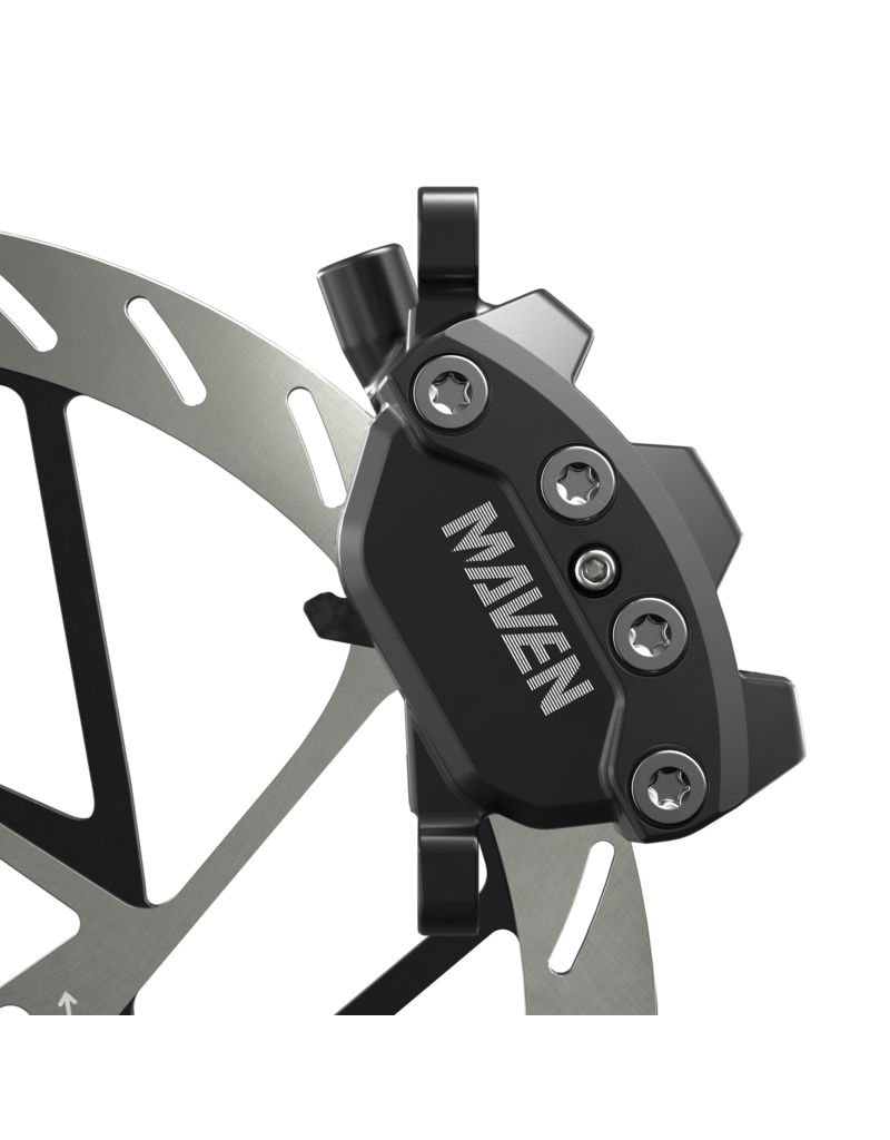 Modern mountain bikes have redefined what riders are capable of, pushing the requirements for extreme-duty power further than ever before. Maven is our answer to that evolution, giving you the boundless power of confidence for elevated speed and control on ever-more demanding terrain. Maven Base’s lever body houses Directlink, which translates rider input for a smooth application of power. And because of a stiff 4-bolt caliper that sheds an incredible amount of heat, that feel remains consistent, so the last corner feels like the first corner. And with so much baseline power on hand, there is more range than ever before to tune the ride qualities to exactly how you want with different pad materials, and rotor sizes. Maven Base features a Blasted Black anodized finish, and for ease of customization includes tool-free reach adjust.