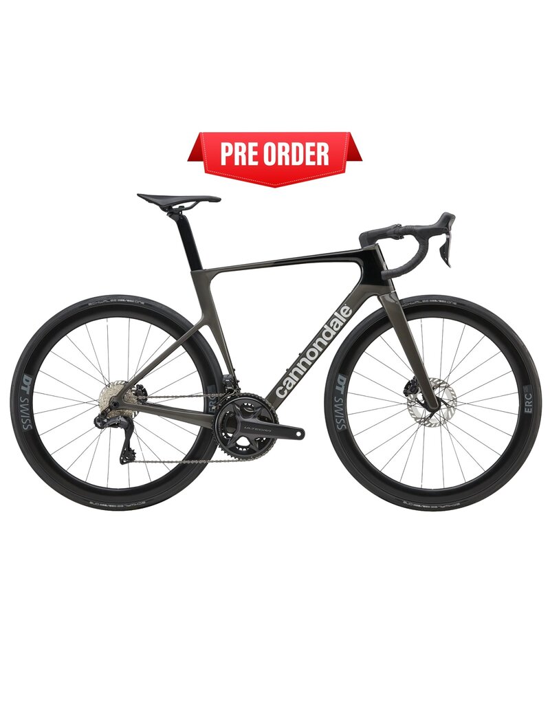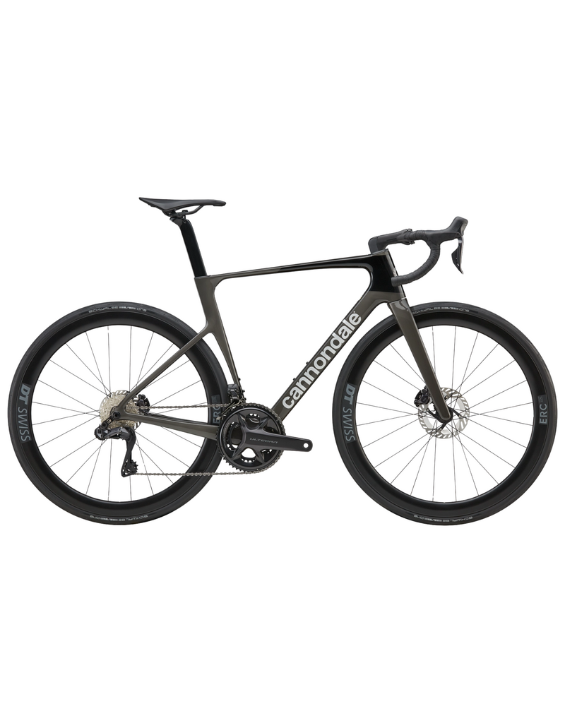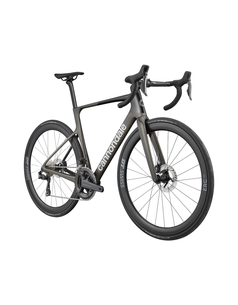 Optimized speed for full-gas racing. The superlight Gen 5 carbon frame rolls on DT Swiss ERC LOG 45 carbon wheels with DT Swiss 370 hubs. Shimano’s Ultegra Di2 handles shifting with electronic precision. Vision Trimax Carbon Aero bars and Cannondale C1 Conceal stem shape a low, efficient front end, while Ultegra hydraulic discs stay predictable when pace compresses and corners come in hot. Built to make the surge stick.