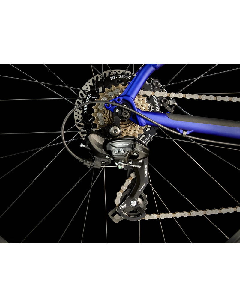 A lightweight aluminium frame with internal routing to protect your cables and add to the bike's sleek look, trustworthy 14-speed Shimano shifting with a wide range of gearing so you always have the right gear for your terrain, powerful hydraulic disc brakes and a suspension fork that takes the edge off bumps and rough terrain.